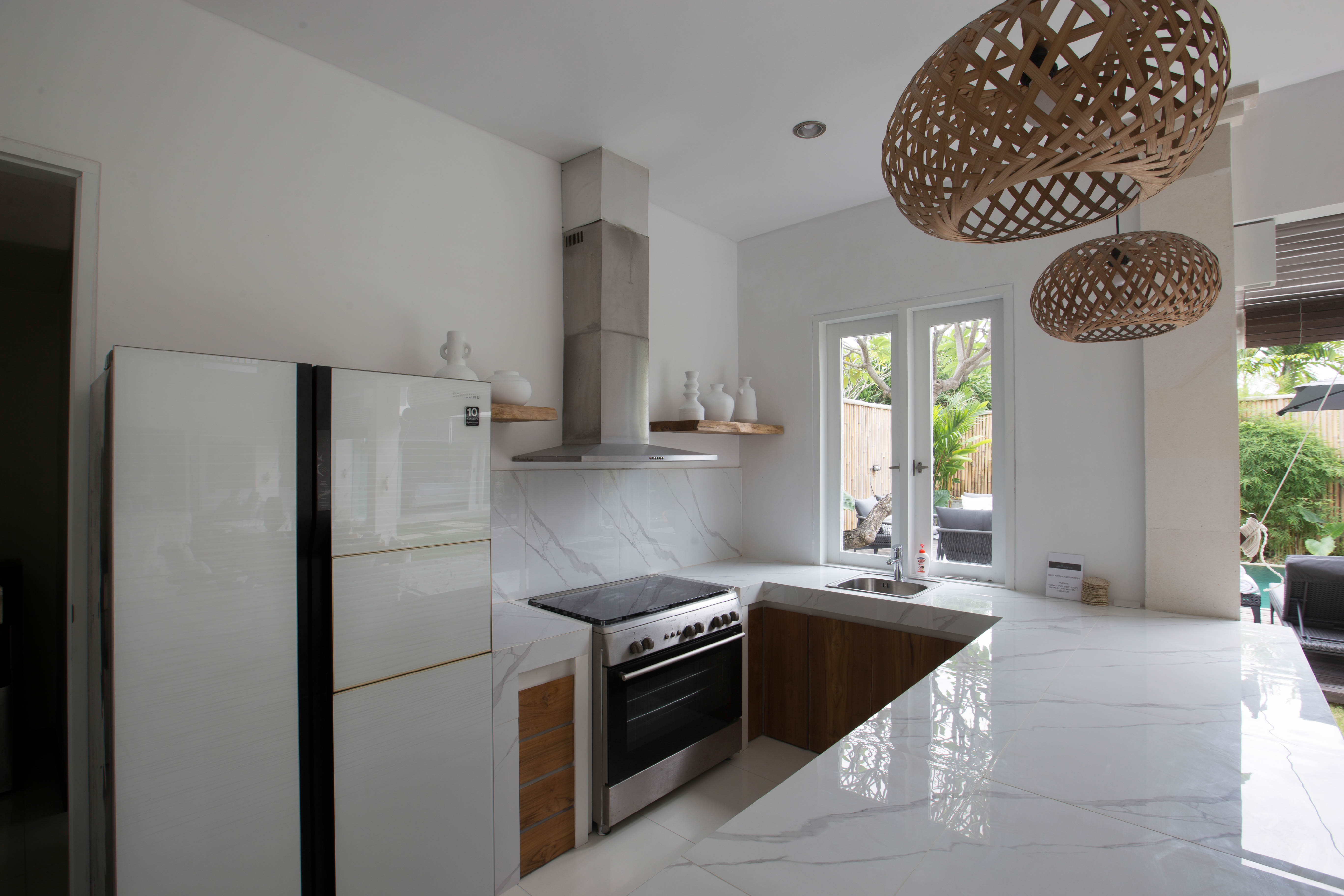 Villa Mahasari boasts a fully functional kitchen with appliances such as a gas burner stove, oven, large sink and a dual door fridge and freezer. All crockery, cutlery and cooking utensils are provided.